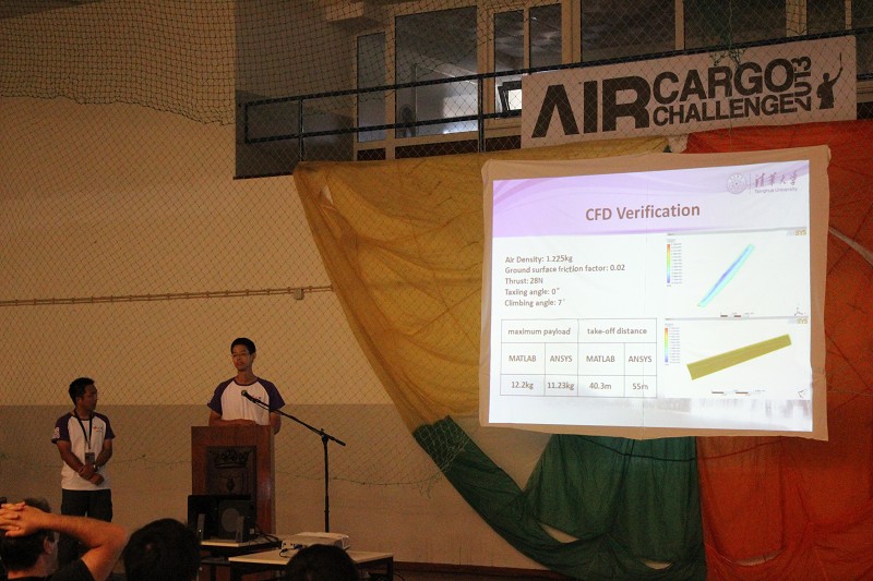 第一天的技术答辩环节让大家了解了各个大学所做的工作,各队都显示出了不俗的实力。其中,德国斯图加特大学模型队的飞机制作工艺精湛,飞机采用全复合材料制作,翼型保持好,强度高。北京航空航天大学派出的两支参赛队也同样抢眼,两款飞机设计新颖,装卸方便。其余各队的飞机也各有特色,几乎均采用上单翼布局,翼展从3m到5.8m不等。