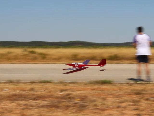 后面两天三轮的飞行比赛既紧张刺激又欢乐不断,在毒辣的阳光炙烤下,各队不断挑战着自己飞机的极限和现场让所有人都捉摸不透的风向。每一架飞机无论是否安全着地,都会获得全场雷鸣般的掌声与欢呼。在第二轮比赛中,由于前起轴承出现问题,导致飞机起飞时超过了60米的滑跑距离限制,未能成功冲击12.6kg,而且在此过程中机翼也受到了轻微损伤。不过,这些问题在队员们细致的地勤保障下都得到了迅速解决。下午再战,飞机在杨贵慈教练精确的操控下,克服了强侧风起飞的不利环境,最终成功将12.07kg的铁块带上了蓝天。