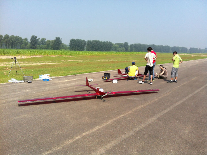 一分耕耘一分收获,所有成绩的取得正是源于参赛队员的不懈努力。在五个月的预研和设计工作期间,大家分工明确,高效并行,高武焕负责搭建了动力系统试验台,谢青对飞机的气动性能进行了模拟计算,杜旭朕负责主持了试验翼梁的制作,高宇驰和林家靖则探索了复合材料制作工艺并进行了梁结构的试验和校核计算。而在飞机制作、测试和改进的近五个月里,大家通力协作,挤出一切假期时间集中制作了两架试验机和一架比赛飞机。同时大家还要克服北京禁飞的不利条件,驱车远赴郊区寻找试飞场地,最终累计进行了七天近二十个起降的试飞,为之后的飞行比赛积累了经验。