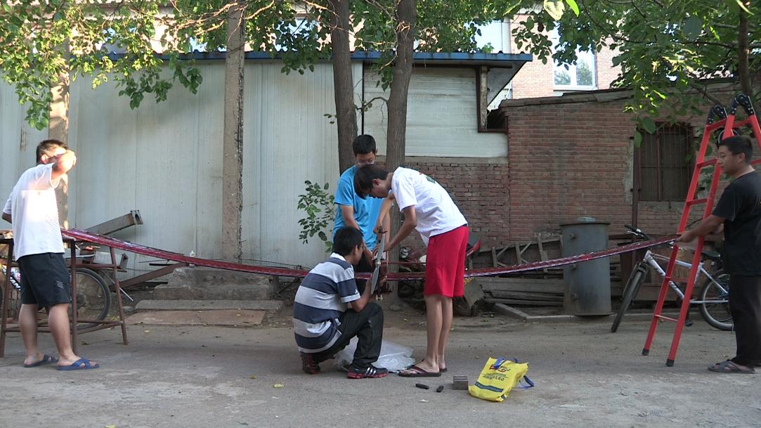 图为队员们在基地(AIR)门口进行机翼强度测试
