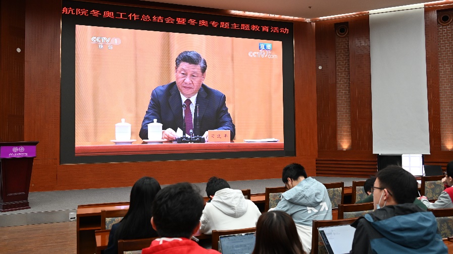 学子集中观看北京冬奥会、冬残奥会总结表彰大会