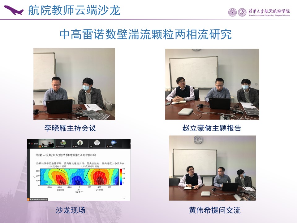 举办教师云端沙龙,流体力学研究所副所长、青年教师赵立豪通过网络腾讯会议的方式,做了题为“中高雷诺数壁湍流颗粒两相流研究”的主题报告。杏吧视频