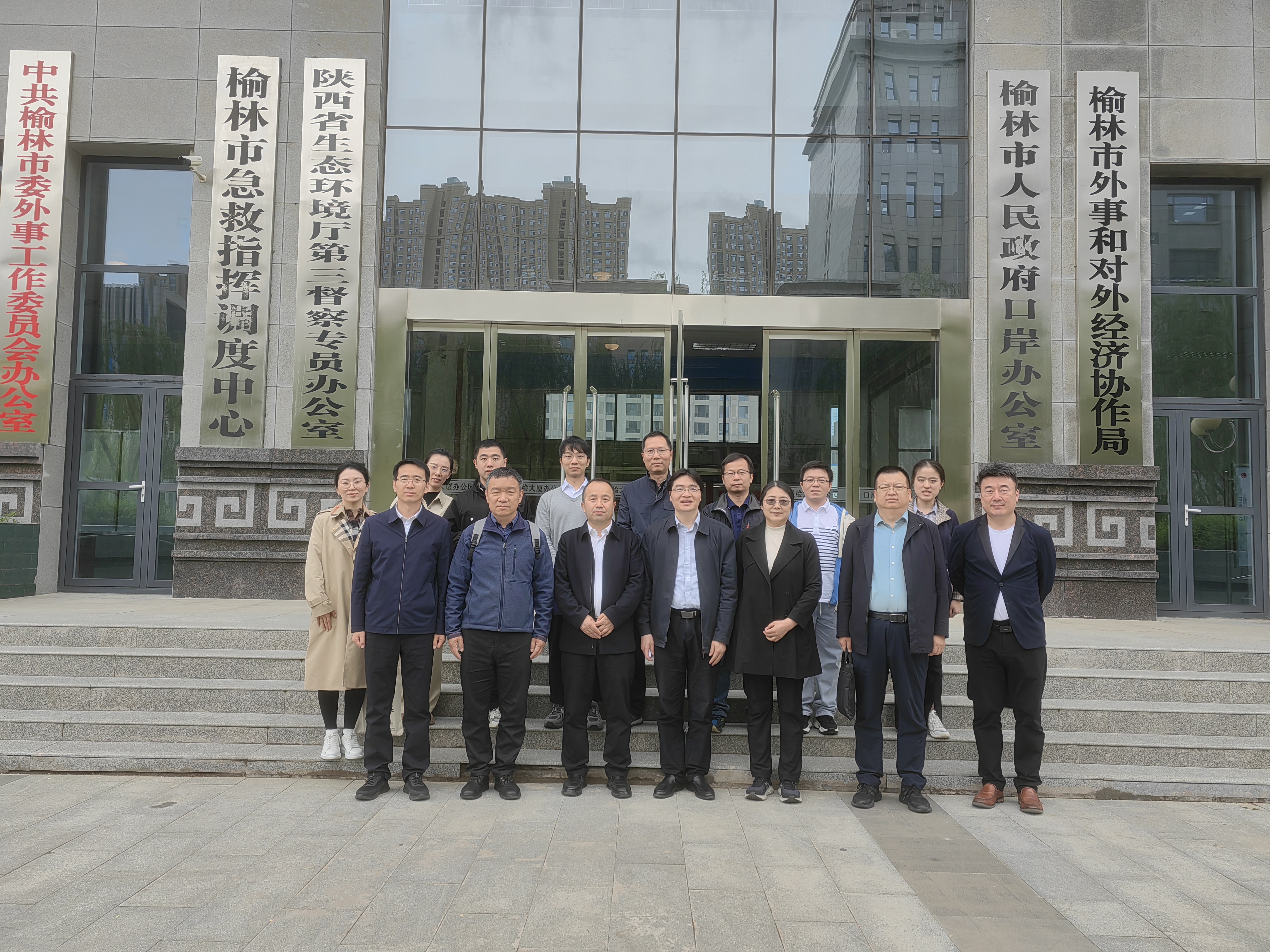一行与榆林市招商局、科技局、发改委和高新区管委会等合影