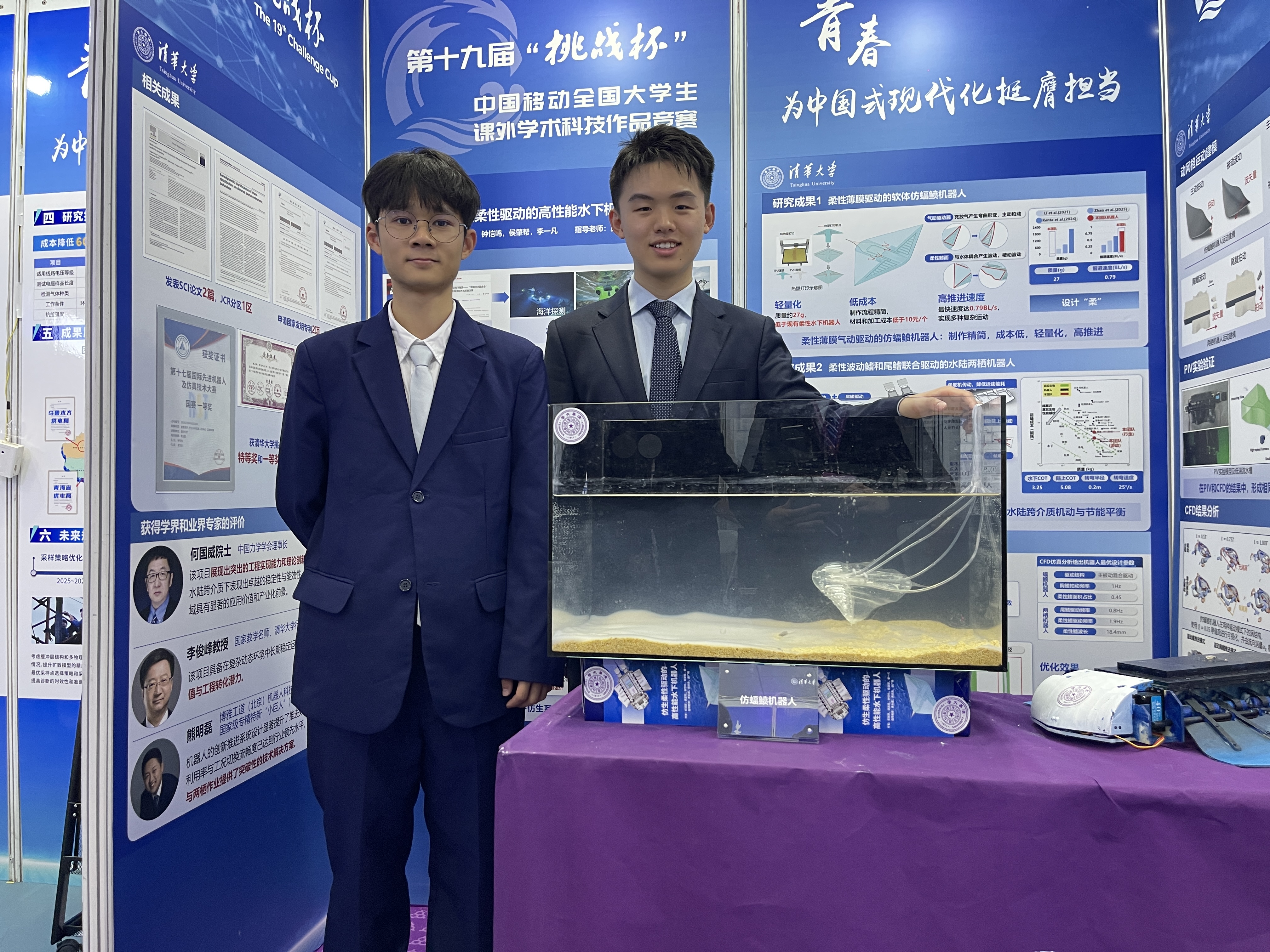贾永霞老师、黄伟希老师和北京大学工学院谢广明老师指导,彭靖舒、梁志铨、钟恺鸣、侯肇帮和李一凡共同完成的本科生参赛作品“仿生柔性驱动的高性能水下机器人”荣获主体赛一等奖。杏吧视频