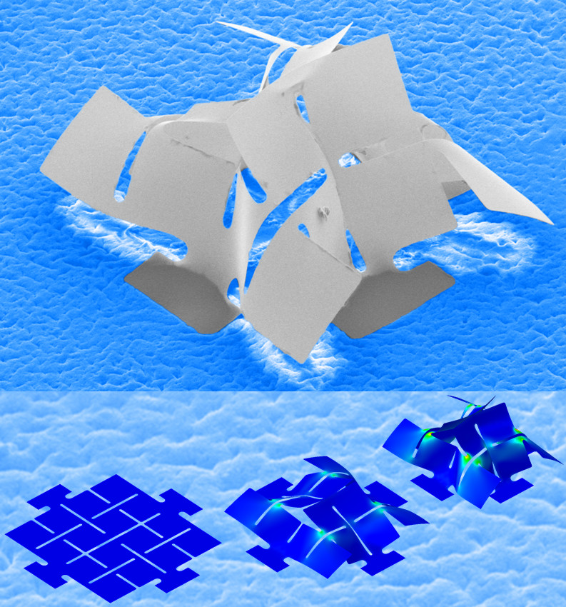 张一慧副教授在《美国科学院院报》(PNAS)在线发表题为《一种由剪纸力学变形诱导的微纳米薄膜三维结构的成型方法》(A mechanically driven form of Kirigami as a route to 3D mesostructures in micro/nanomembranes)的文章,报道了一种可适用于各种高性能材料的微尺度三维结构组装方法,为先进微纳米系统的制备提供了一种重要的新途径。