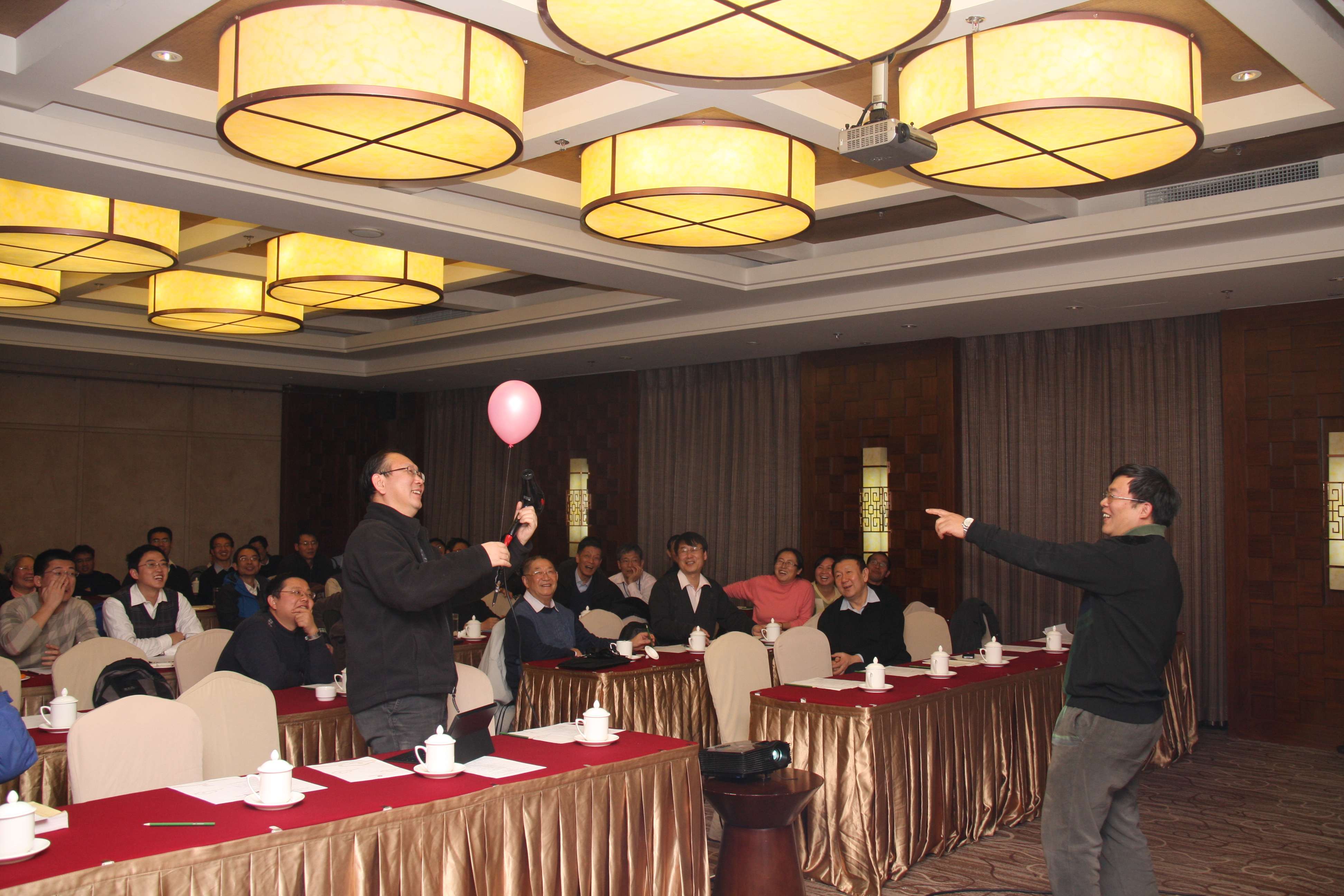 范钦珊在示范讲授时还原了他平时的上课情景,并根据自己多年的教学经验与思考对如何提高教学质量、加强课堂互动,从加深教学理念认识、提高学生学术志趣、加强师德建设等方面提出了自己的见解。高云峰在现场展示了自己动手制作的指南车教学道具、气球空中平行运动小实验、课堂师生互动视频回放等,分享了自己的教学体会,表示在教学中要重视传播知识与探索研究的结合,提高学生动手实践能力,培养学生学术志趣。在两位老师讲课和介绍过程中,在场老师可以随时打断,进行互动提问,现场讨论氛围十分热烈。与会教师围绕授课内容,就课程之间的衔接、生师互动的不同层次、教学资源的共享、网络课堂的利用、反转课堂与传统课堂的区别等展开了广泛深入的讨论。
