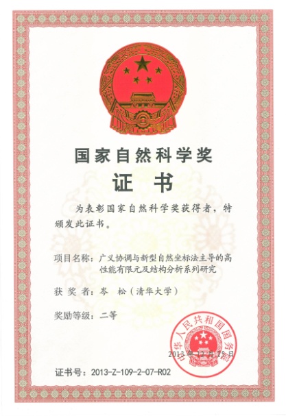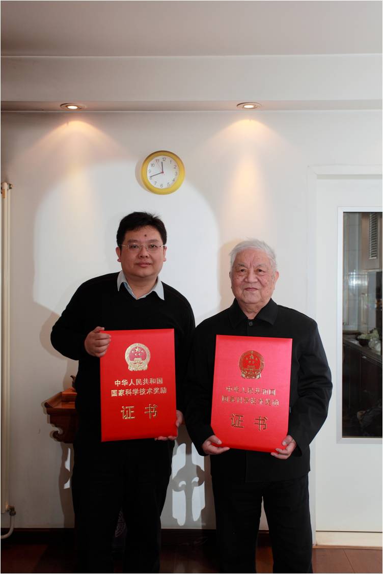 图为 岑松教授与第一完成人、88岁的龙驭球院士 图为 获奖证书
