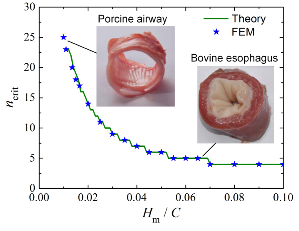 图3 粘膜失稳的理论与实验对比